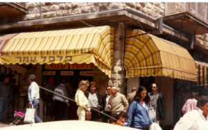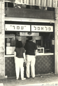 As times grew tougher, she proposed the idea of selling falafel at the local marketplace to her husband. Embarrassed to sell such a product, Chaim dismissed the idea, but Noami insisted. She prepared the falafel at home, filling the pita bread with nothing but tahina, hot sauce, and pickles, and sent him to the market. Within hours, he sold all the falafel sandwiches. The following day she doubled his inventory and, yet again, he returned faster than expected, without any leftovers. This continued until one day contractors began to construct a building where Chaim used to sell his sandwiches. Noami, who by that time had saved some money from the falafel sales, contacted the landlord and purchased space in the building. By the time Chaim and his wife opened their falafel restaurant, it was not only the first in the region, but also the most successful.